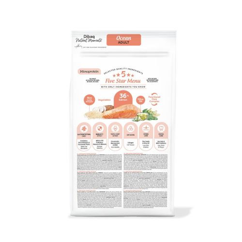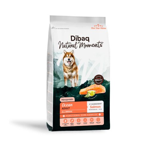 Dibaq Natural Moments Dog Ocean es un pienso natural formulado para perros adultos de todas las razas, ideal para quienes buscan una dieta sabrosa, saludable y rica en ácidos grasos omega 3 y 6.